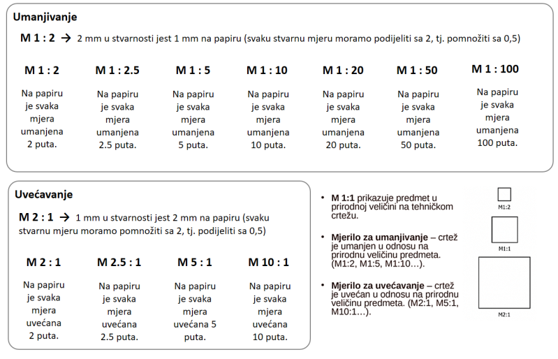 Ako se predmet ne može nacrtati u prirodnoj veličini, onda se crta umanjeno ili uvećano.