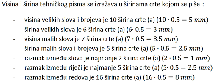f) svi kotni brojevi na crtežu moraju biti iste visine (visina kotnog broja 3-4 mm),