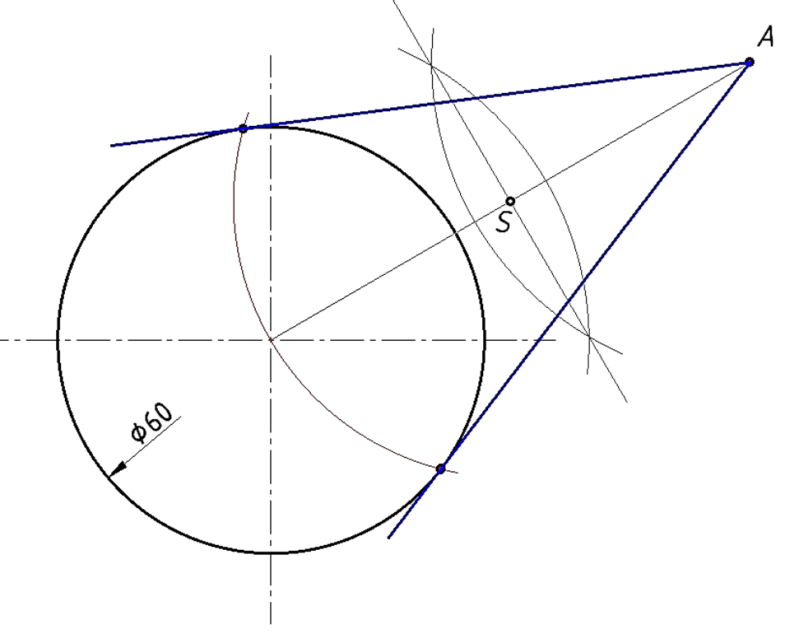 Primjer 1. Spajanje točke i kružnice tangentnim pravcima.