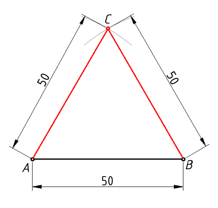 Primjer 1. Konstrukcija jednakostaničnog trokuta, zadane duljine stranice. a = 50 mm