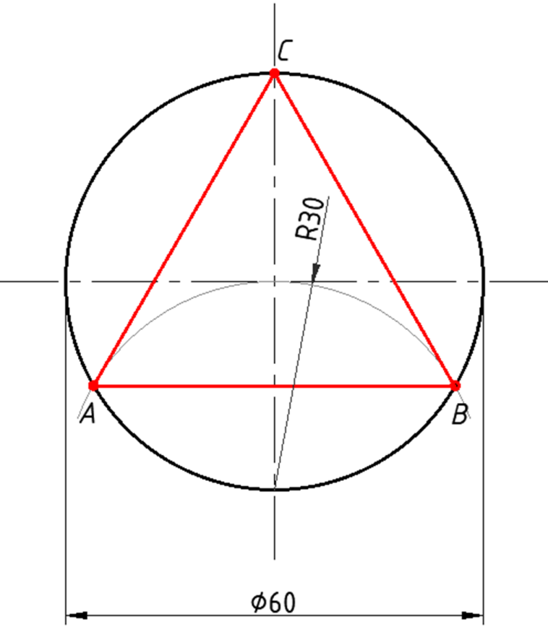Primjer 2. Konstrukcija jednakostraničnog trokuta pomoću zadanog polumjera kružnice (r). r = 30 mm