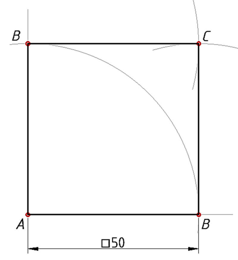Primjer 1. Konstrukcija kvadrata zadane stranice. a = 50 mm