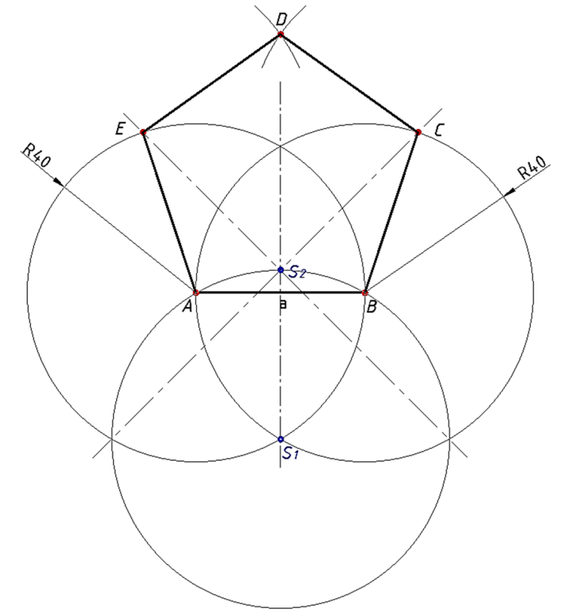 Primjer 1. Konstrukcija pravilnog peterokuta zadane duljine stranice. a = 40 mm