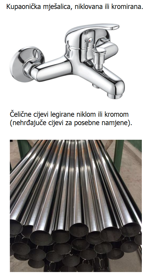 Osim toga krom se koristi za kromiranje različitih metalnih dijelova u sanitarnoj tehnici, a nikal za niklanje točila (izljevnih armaturnih elemenata).