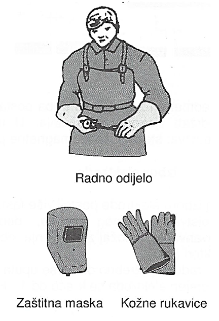 - za zaštitu tijela: radno odijelo i kožna pregača,