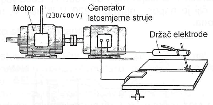 Između radnog predmeta koji je spojen na osnovni materijal uz pomoć stezača i elektrode, dolazi do stvaranja električnog luka koji razvija visoke temperature, čime dolazi do taljenja elektrode i formiranja zavara.