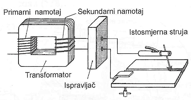 Zadatak uređaja za elektrolučno zavarivanje je smanjiti napon gradske mreže (220 V) u napon potreban za zavarivanje (15 – 50 V) i povećati jakost struje gradske mreže sa (15 A) na jakost struje zavarivanja (60 – 300 A).