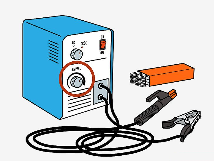 Jakost struje zavarivanja podešavamo pomoću promjenjivog otpornika na kontrolnoj ploči uređaja. Kabel sa stezaljkom je potrebno spojiti na (-) pol uređaja, a drugi kraj stezaljkom na materijal koji želimo zavarivati. Elektrodu pak spajamo u (+) pol uređaja za zavarivanje. Ovakav način spajanja se kratko zove DCEP spoj (Direct Curent Elecrode Positve):