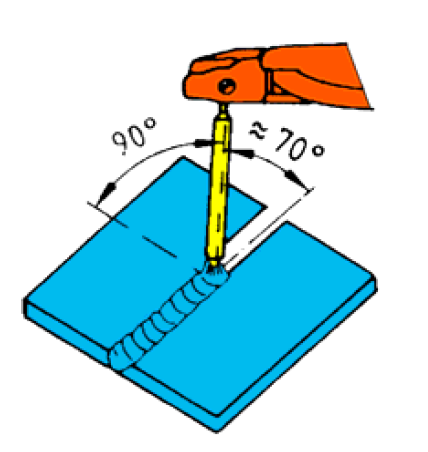 Nagib elektrode pri zavarivanju ovisi o tehnici rada, a treba nastojati da elektroda bude što okomitija (oko 80°).