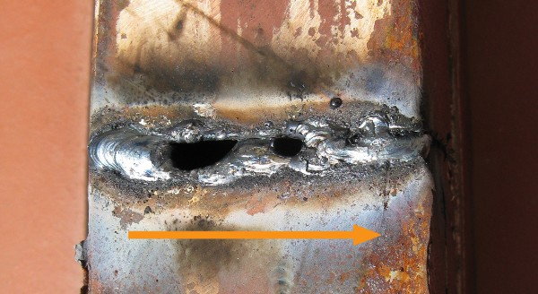 - Velika struja zavarivanja dovodi do brzog taljenja osnovnog materijala, pri čemu može doći pregorjevanja materijal i nastanka rupa u zavaru.