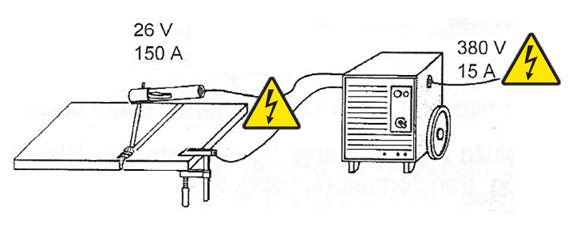 - Kod elektrolučnog zavarivanja glavni izvor opasnosti je udar električne struje, kako na primarnoj ili mrežnoj strani gdje se uređaj priključuje na električnu mrežu, tako i na strani na kojoj se izvodi zavarivanje.