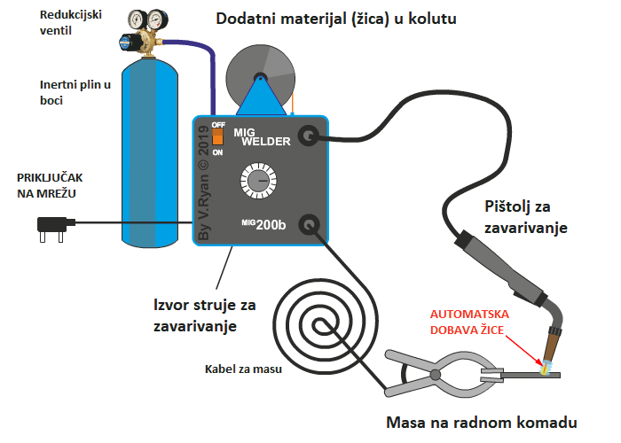 Slika prikazuje uređaj za MIG postupak zavarivanja:
