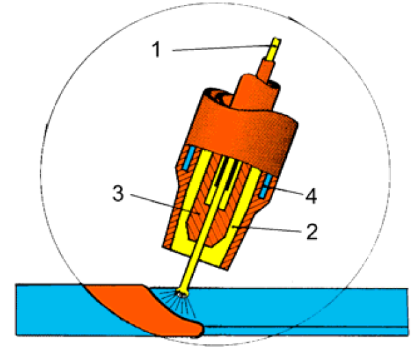 Slika prikazuje vrh pištolja za MIG postupak zavarivanja u presjeku prikazuje: